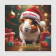 Con Un Sombrero De Santa Y Regalos De Navidades, Se Muestra Un Cerdo De Guinea Marrón Y Blanco.