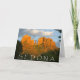 Saludo de la tarjeta de Sedona con la roca de la catedral en Sedona, Arizona que brilla intensamente en la puesta del sol.