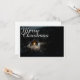 La carta muestra una escena evocadora y empinada con una pequeña cabaña de madera iluminada en medio de un bosque cubierto de nieve. La fuente de luz del interior crea un bonito contraste con el entorno oscuro y tranquilo. La elegante inscripción "Feliz Navidad" en blanco le da al motivo un toque festivo. 🎄 ✨