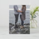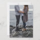 Esta tarjeta de Navidad moderna presenta una elegante escritura en caligrafía blanca sobre una foto a sangre. El saludo en la parte delantera dice "Seas n' Greetings" lo que la convierte en un diseño perfecto para cualquiera que busque un tema de playa o náutico. Este diseño acomoda una sola foto vertical en la parte delantera de la tarjeta. En el reverso encontrarás un festivo patrón de franjas diagonales rojas y blancas que se pueden eliminar o cambiar. También puedes agregar otra foto o texto en la parte posterior seleccionando la opción "personalizar más".