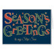 Una tarjeta de Navidades de diseño para un Step Son, con "Season's Greetings" (Saludos de temporada) con letras de puntos de polka rojo y blanco y verde oscuro y blanco, delineado con un efecto dorado sobre un fondo azul profundo y repartido con estrellas de efecto dorado y rojas. Puede cambiar fácilmente el mensaje interno en este diseño digital basado en texto de Judy Adamson y si no encuentra una tarjeta para la persona a la que desea enviarla, hay una versión personalizado que puede personalizar.