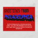 Esta tarjeta postal es una excelente manera para los nativos y visitantes de Filadelfia de enviar notas a amigos y familiares en otras partes del país o del mundo.