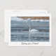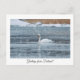 Saludos desde Finlandia cisne en la postal de invierno de nieve.