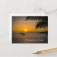 Entrada del Canal de Panamá vista desde la carretera de Amador, Ciudad de Panamá al atardecer sobre un brillante cielo naranja, con hojas de palmera en primer plano.