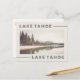 Dé un paso atrás en el tiempo con este diseño vintage de postal que presenta el hermoso paisaje del lago Tahoe. La imagen, tomada del lago, muestra Round Hill a lo lejos, rodeado por el agua azul y los frondosos árboles de la zona. El recuerdo perfecto para su viaje al lago Tahoe o una adición nostálgica a su colección de postales retro.