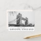 Envíe sus saludos desde la bulliciosa ciudad de Londres con esta postal de estilo vintage Tower Bridge. La fotografía en blanco y negro captura el icónico puente contra un cielo nublado, creando una imagen atemporal. La parte delantera dice "Saludos desde Londres", mientras que la parte trasera está diseñada para que parezca una reproducción realista de una antigua postal, con espacio para tu mensaje y dirección. Perfecto para viajeros, coleccionistas o cualquier persona que ame el encanto de las postales antiguas.