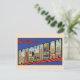 Esta reproducción de tarjeta postal vintage de Michigan presenta letras grandes llenas de imágenes icónicas de Michigan.