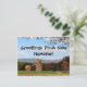 Un hámster tallando una calabaza en New Hampshire con el texto "¡Saludos desde Nuevo Hamster!" Perfecto para las visitas de otoño.