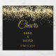 Elegante y lujosa etiqueta de vino espumoso ejecutada en un fondo negro con brillantes secuencias doradas y un deseo positivo de color ocre dorado es ideal para decorar un boda de lujo. Fácilmente personalizado.