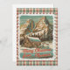 Encantadora cabaña de montaña de estilo retro rústico en invierno con "Feliz Navidad desde Montana" en el fondo festivo de la manta.