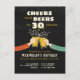 Dos manos con jarras de cerveza brindando por 30 años de cumpleaños, dibujadas en estilo de dibujos animados retro de los 50 y 60, sobre fondo de pizarra negra. Tarjeta de invitación para aquellos con presupuesto limitado.