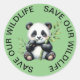 Pegatinas Verdes Ligeros con una linda foto de un Panda comiendo Bambú en el medio. Salvar la vida silvestre impresa en un círculo alrededor de los bordes. Pegatinas ambientales y ecológicos. Ideal para todos tus proyectos estacionarios, de artesanía o escolares. Ponte las cajas de almuerzo o botellas de agua. L