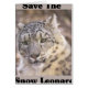 Un primer plano de un leopardo de las nieves con las palabras "Salven al leopardo de las nieves" que lo rodean.