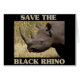 Un primer plano de un rinoceronte negro con las palabras "Salven al rinoceronte negro" que lo rodean.