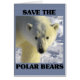 Un primer plano de un oso polar con las palabras "Salven los osos polares que lo rodean". Sin protección, los osos polares pueden no sobrevivir hasta el siglo XXII. Ponlos en la lista protegida.
