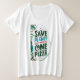 El diseño de la camiseta tiene un mensaje humorístico y juguetón: "Salven el planeta, es el único con pizza". La frase está escrita en un audaz y llamativo tipo de letra, combinando conciencia ambiental con un toque de humor. Para mejorar visualmente el diseño, se podría incorporar un elemento gráfico que represente una porción de pizza o un planeta con una caja de entrega de pizza, añadiendo un tono alegre y relacionado. La estética general es divertida e informal, atrayendo a los que aprecian un poco de ingenio y humor y a la vez promocionando la conciencia ambiental.