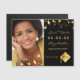 Una foto Guardar la tarjeta imán de fecha para una fiesta de graduación. Al frente: Añade tu propia foto vertical del graduado. Color de fondo negro de moda, decorado con falsas estrellas doradas. Personalice y agregue un nombre y una fecha. Cartas doradas. El nombre y el texto: Guardar la fecha se escriben con un guión de estilo con letras a mano moderno.