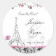 Bodas salven a los pegatinas de cita con el tema francés bonito de París de la Torre Eiffel, rosas románticos y damasco blanco y negro.
