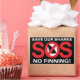 El uso de la señal visual SOS como acrónimo para Save Our Sharks (Salvar a nuestros tiburones) y el símbolo internacional para "No" encima de una aleta de tiburón es una declaración de poder.