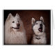 Dog, animal, Samoyed, Husky, couple, white, sleigh, snow, race, dressing, sitting, fur, pet,