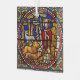 Ornamento navideño de vidrio con una imagen de ventana manchada de cristal de San Francisco de Asís bendiciendo a los animales.