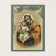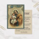 Imagen vintage de San José sosteniendo al Niño Jesús con una liga. La hermosa oración del Memorare a San José está en la parte trasera.