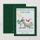 Tarjeta divertida de dinosaurio para el Día de San Valentín en el aula. La parte frontal tiene una escena con tres dinosaurios y dice "San Valentín, ¡Eres DINO-mítico! El borde es un cuadros de leñador verde y negro. Abajo dice Feliz Día de San Valentín y luego personalizas con el nombre de tu hijo. El reverso es todo cuadros de leñador verde y negro.