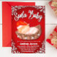 El bebé más lindo viene a la ciudad este invierno, celebra la ducha de bebé con esta encantadora invitación única. Para captar la época más alegre del año, un lindo bebé durmiendo con el gorra Santa Clause fue dibujado digitalmente con halagos de nieve, diseño de títulos y fondo rojo