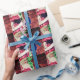 Una imagen divertida de un niño tomando Santa Cláusula hace para un divertido papel de envoltura festiva Artista Jo-Ann Hayden