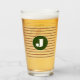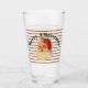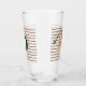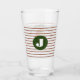 Esta copa navideña presenta una cara de Santa Claus antigua, con rayas rojas, verdes y blancas. "Feliz Navidad" está en un texto verde y negrita. El patrón de rayas está en la parte posterior, junto con un círculo verde que puedes personalizar con tu inicial.