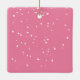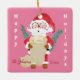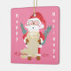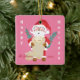 Un adorable adorno navideño cuadrado de cerámica rosa con un caprichoso Papá Noel sosteniendo su lista en el frente y cayendo copos de nieve en la parte posterior. Personalízalo con el nombre de tu familia y el año . © ArianeC Ilustraciones-Todos los derechos reservados
