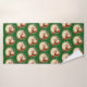 Toalla de baño con una imagen retro de un feliz y sonriente Santa Claus rodeado de una corona de pino con una estampilla de hueso en la gorra.