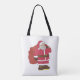 Santa Claus de rojo con bolsa de regalo y anteojos
