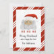 Difunde la alegría de los Navidades con esta tarjeta de felicitación de vacaciones hecha por el personalizado y personalizada que presenta a un Papá Noel muy festivo cantando HO HO HO. Decorada con líneas diagonales clásicas de patrón de vacaciones sobre fondo rojo. Ilustracion original de Suki's, todos los derechos reservados.