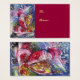 Pintura de acrílico colorida, caprichosa y artística, Santa está tocando arpa a la luz de la luna, búho, ornamentos florales, plantas de invierno, juguetes para niños, bayas huecas en colores brillantes rojo, verde, blanco, azul, amarillo. por Bulgan Lumini (c)