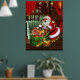 ¡Santa Claus! ¡Papá Noel te trae los regalos! ¡Un lindo Santa Claus con una bolsa de regalo y muchos regalos en una sala de estar!