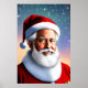 Arte de Santa Claus en el exterior en la noche estrellada. Lleva puesto su traje rojo tradicional y su gorra, y tiene una larga barba blanca. Otro nombre para Santa Claus, san Nicolás, Kris Kringle, Padre Navidad, San Nicolás. Este es un arte generado por IA.