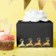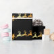 Papel de embalaje de lujo con pequeño falso Santa de oro en su trineo con el reno en un fondo negro. Papel de embalaje distinguido para el navidad.