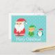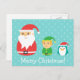 Un ilustracion alegre y adorable de Papá Noel lindo, Elf vestido con un traje verde, Pingüino Azul con Navidades Gorras alineados en el estilo de muñecas Matryoshka (muñeca anidada/rusa). Un diseño simplemente adorable y caprichoso para celebrar a los Navidades y las fiestas. Un diseño divertido que pondrá una sonrisa en los rostros de amigos y familiares.