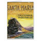 Los Verduras de Santa María California son una etiqueta vintage de 1940 que muestra un tren de carga frente a las montañas de California. El diseño tiene un aspecto un poco angustiado.