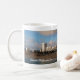 Una opinión panorámica de la hermosa vista de la playa de Santa Mónica. Las altas subidas de la ciudad se oponen contra un cielo azul bonito, y las nubes hinchadas que empapan para arriba los rayos apenas del sol poniente de rosas pálidos.