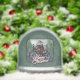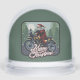 Unique snow globe that features "Santa" on yellow motorcycle with evergreens and Merry Christmas text overlay.