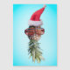Navidades divertidos y tarjeta de vacaciones de año nuevo. Piña con gorra de Santa y gafas de sol. Verano Sanata ananas.