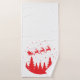 Santa Sleigh and Reindeer Flying Over Treetops Red