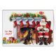 The front of this Christmas greeting card has an image of a Greater Swiss Mountain Dog who has found Santa Claus resting beside the blazing fireplace after delivering the family gifts. Santa holds one last package, and the dog looks expectantly at him. The text at the side says "For ME, Santa?" All the text, inside and out is customizable, so you may change it or add to it, if you'd like. See many more dog breed images and products at Dog Village.