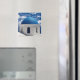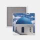 Magnet con Santorini, foto de Grecia con cielo azul y nubes blancas.