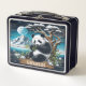 Un panda encuentra alimento en una comida de bambú dentro de su santuario forestal. El entorno rústico de madera oscura, bien acariciada, combina a la perfección con la tranquilidad del lugar. Una montaña nevada aporta un toque de grandeza, mientras que el océano azul ofrece una presencia apacible. Personalice la escena con un nombre personalizado.