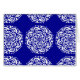 Esta mandala blanca se sienta sobre un fondo azul intenso y profundo. Los colores son inteligentes e introspectivos. Parte de la colección Kylgh Mandala.
