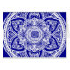 Esta mandala blanca se sienta sobre un fondo azul intenso y profundo. Los colores son inteligentes e introspectivos. Parte de la colección Bardh Mandala.