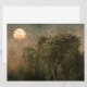 Pintura digital de un sauce con fondo creativo de atardecer.